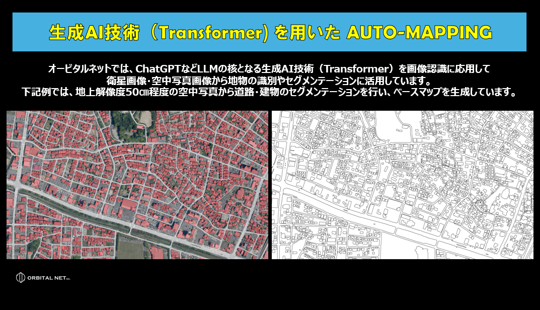 ※右側の画像は超解像画像ではなく等倍の鮮明化画像です。超解像画像は当社ブースでのみご覧になれます。2.生成AI技術(Transformer) を用いた AUTO-MAPPING