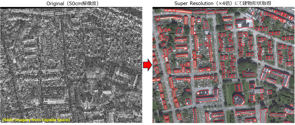 Capella Space0.5m解像度のSAR画像から建物形状の生成