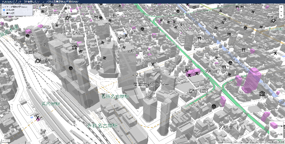 『ソーラーパネル設置建物3D可視化MAP』は、建物上に設置された太陽光発電設備(PV)を、AIを用いて空中写真判読を行い、国土交通省が公開している 3D都市モデル(Project PLATEAU) のうち建物情報にPVの有無を付与して、建物PV設置状況を3D地図コンテンツとして可視化表示するものです。 まず、第1弾として名古屋市のソーラーパネル設置建物の3D可視化MAP公開しました。