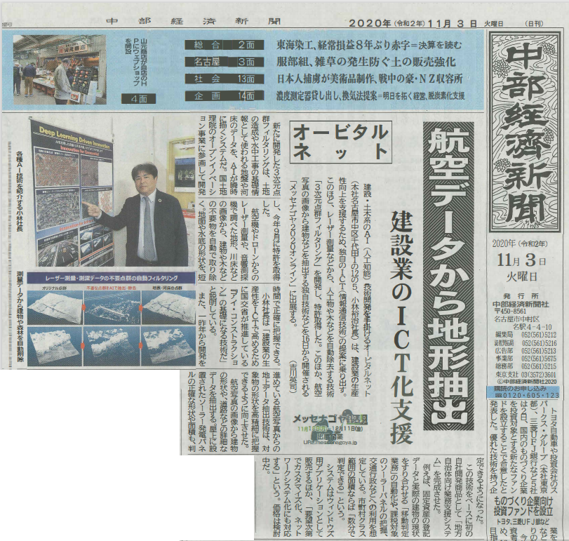 2020年11月3日発刊の中部経済新聞1面に弊社の取り組みに関する記事が掲載されました。