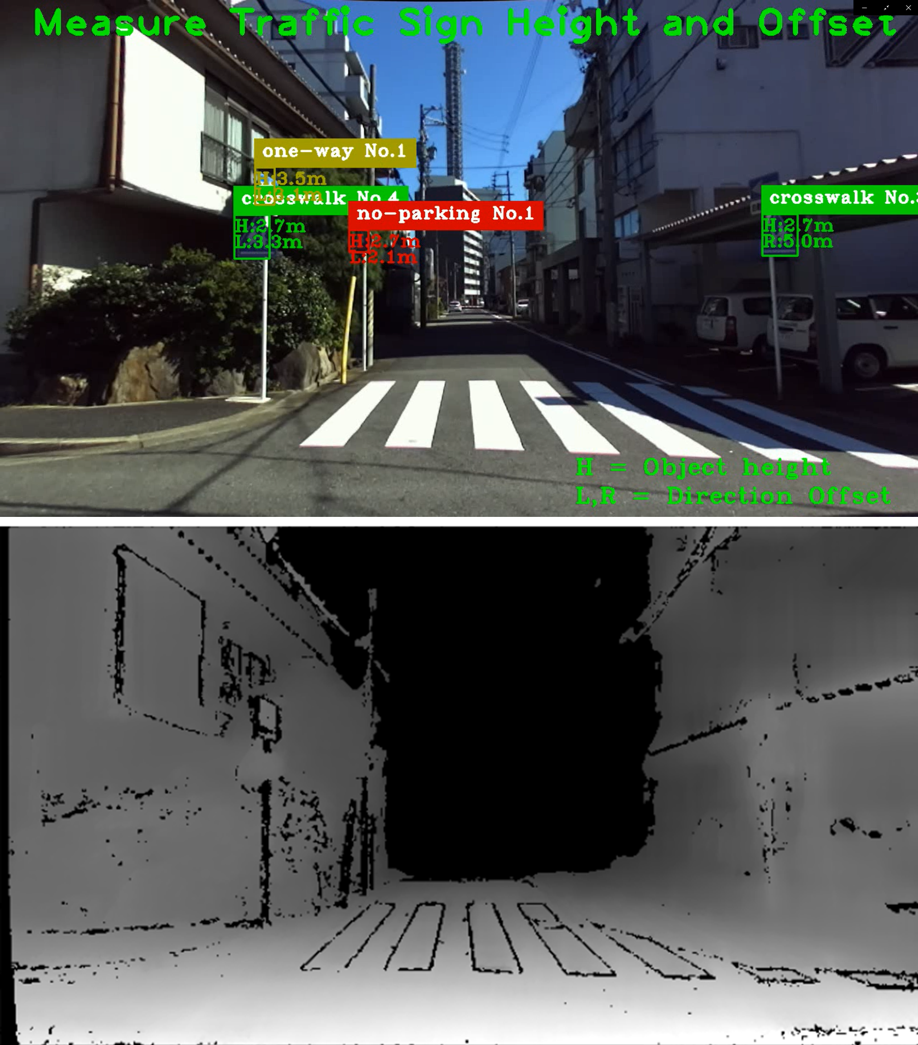(上)物体検出と3次元位置情報の取得 /(下)深度画像