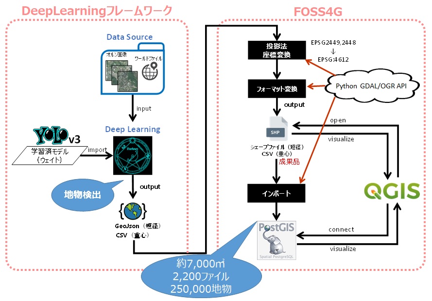 地物検出からG空間データとしてデータベース化するまでのフロー