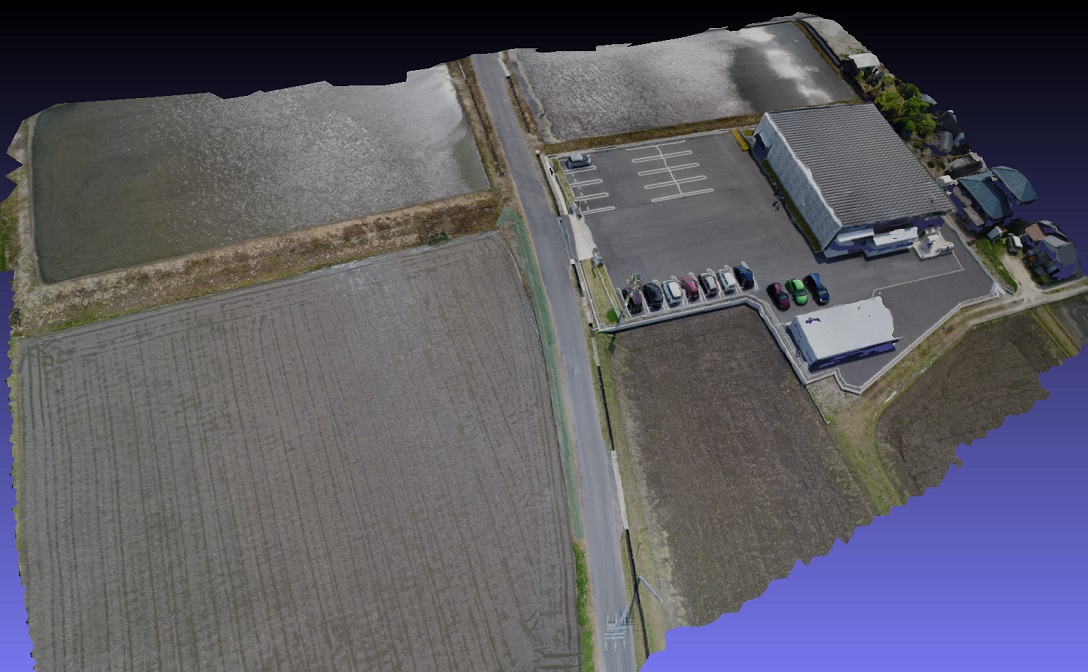 オープンソースのSfM(Structure from Motion)ソフトウェアを用いて、UAVの撮影データから3次元点群データ、3次元サーフェースデータ、DEMデータなどを生成します。
